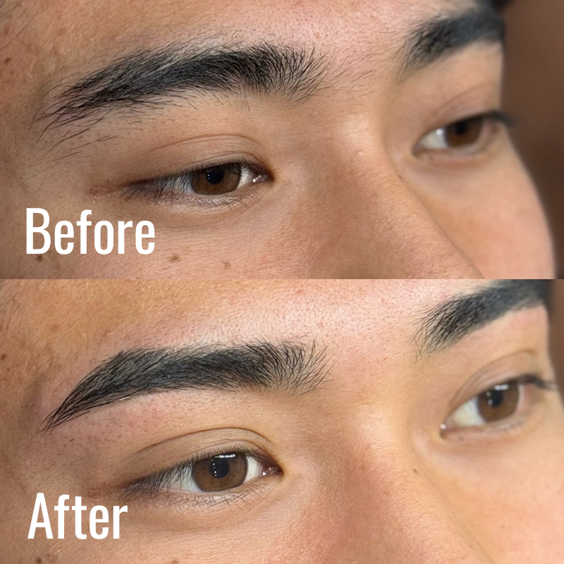 日常で綺麗な眉毛を再現するために、希望のお客様にはメンズ眉毛メイクと、レクチャーまで行っております。