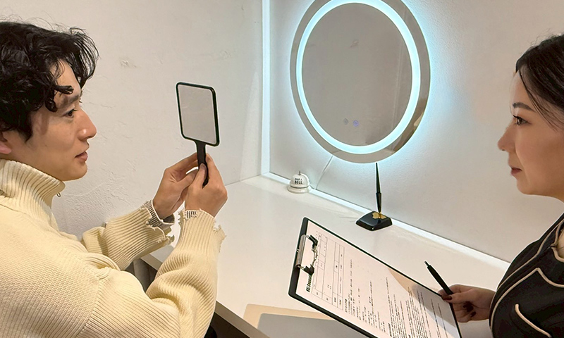一緒に鏡で確認しながら、眉毛のデザインと施術の流れを丁寧にご説明します。